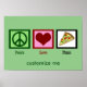 A cool pizza poster print featuring a peace sign, heart, and a slice of pizza with mushrooms and tomatoes. A cute custom poster for a pizza place. Customize with your pizza company or Italian restaurant name.