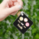 The key chain is made of metal and really sturdy. The flower design is really cheerful. The logo and colors are clear and crisp!