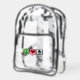 A peace sign, heart, and a cute house on a realtor clear backpack. A cool marketing item for a real estate company or home builder hosting an open house.