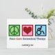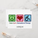 Peace Love Recreational Therapy. Cute therapeutic recreation gift for a therapist who uses interventions to help people with disability. A peace sign, heart, and person in a wheelchair. Personalize this card with a name.