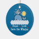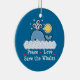 Lightweight, smooth, pure white ornament with nice sheen. Perfect size to be seen from across the room ... and to attract closer inspection! Price was great for ordering enough for the whole family! Clear, bold black design just as requested. Matches the order exactly. Just so nice!