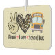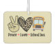 This cute design features the words "Peace, Love, School Bus" with a hand peace sign, a leopard print heart and a school bus. It is perfect for school bus driver for back to school, first day of school, last day of school or just any days.