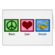 A peace sign, heart, and a scorpion symbol for a Scorpio. Peace Love Scorpio birthday card.