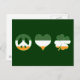 Peace sign, heart and shamrock in colors of the Irish flag.