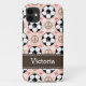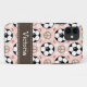 Show your love and passion for soccer with this cute and customizable repeating soccer ball, peace symbol and heart design in pink, black, whtie and brown. Personalize this soccer pattern with your name on the PRINTED ribbon look design. This makes a great gift for a girls soccer team player, coach or mom. Artwork © Chrissy H. Studios, LLC. All Rights Reserved.