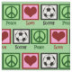 Pretty soccer fabric with a peace sign, heart, and a cute soccer ball. Pretty green pattern for a sports fan.