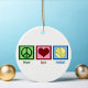 A peace sign, heart, and a softball. A cute gift for a softball player.