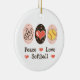 Cute peace symbol, heart and yellow softball in pink and dark brown on softball apparel, clothes, stationery and more items that make a cute girls softball player, softball team, softball coach, future softball player or softball mom and dad gift.