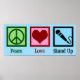 Peace Love Stand Up Comedy. A cute standup comedian gift for a comic who likes to perform funny sets at open mic night at comedy clubs.