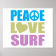 Peace Love Surf...What else do you need in life? Perfect gift for any surfing addict. It doesn't matter if you're a professional surfer, you spend your vacations hitting up all of the best beaches, you're a surfer girl who spends all of her free time hitting the waves, or you're a surfing dude who blew off school to hang out at the beach...you're addicted to surfing! Funny gift idea for any surfer. Great gift for a surf diva. Surfs up! Hang 10! Design features a heart and a peace sign. See our shop for more fun and unique Peace Love...shirts and gifts.