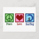 Peace Love Surfing Gift. An awesome surfing design with a peace sign, heart, and a cool surfer on a surfboard riding blue waves. I love going to the ocean when the surf is wild.