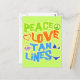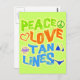 Few things make a beach bum happier than peace, love and tan lines - beautiful, beautiful tan lines. Retro 60s style, multi-colored design in a weathered vintage look.