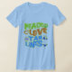 Few things make a beach bum happier than peace, love and tan lines - beautiful, beautiful tan lines. Retro 60s style, multi-colored design in a weathered vintage look.