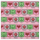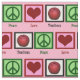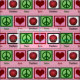 Peace signs, hearts, and red apples to symbolize teaching. A cute fabric to make a teacher's gift.