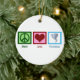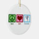 Lightweight, smooth, pure white ornament with nice sheen. Perfect size to be seen from across the room ... and to attract closer inspection! Price was great for ordering enough for the whole family! Clear, bold black design just as requested. Matches the order exactly. Just so nice!