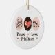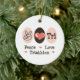 Lightweight, smooth, pure white ornament with nice sheen. Perfect size to be seen from across the room ... and to attract closer inspection! Price was great for ordering enough for the whole family! Clear, bold black design just as requested. Matches the order exactly. Just so nice!