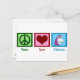 A green peace sign, a red heart, and a pretty unicorn with a cute purple mane. I love fantasy animals and unicorns are my favorite. Add this beautiful unicorn postcard to your collection.