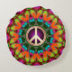 Homely Hippie Home Decor : Colourful psychedelic colours geometric mandala design round cushion / pillow with gold peace symbol in the centre of each side. Same energizing design on each side, but each with a slight variation, to give your home an extra visual option! Made whilst listening to some funky Psytrance music. » Enhance your bedroom, lounge, your van or meditation room with unique and alternative art.designs » by webgrrl.biz