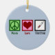 Lightweight, smooth, pure white ornament with nice sheen. Perfect size to be seen from across the room ... and to attract closer inspection! Price was great for ordering enough for the whole family! Clear, bold black design just as requested. Matches the order exactly. Just so nice!