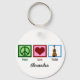 Cute peace sign, heart and violin on a pretty personalized violinist keychain gift. Peace Love Violin.