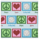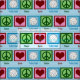 Cute blue volleyball fabric featuring a peace sign, heart, and a ball for your favorite sport. Peace Love Volleyball fabric for a team or coach.