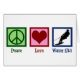 Peace Love Water Ski. A cool water skiing gift featuring a peace sign, heart, and skier.