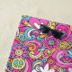 Fun multicolored design featuring cool retro elements such as heart, peace sign, doves and abstracts.
