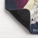 A christian themed mousepad. Designed with a sweet angel with yellow wings holding a shepherds crook. Sitting with white fluffy lambs. Navy blue and burgundy watercolor background, with tiny flecks of faux gold sparkle glitter (not actual glitter just a printed image). Text says: peace on earth and goodwill toward all.