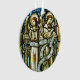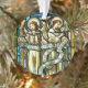 Stained glass image of two angels carrying the message "Peace on earth and goodwill to men, glory to God in the highest"