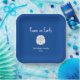Christmas Peace on Earth Blue Holiday party plate, with a sand dollar and white typography design. With customizable lettering, you add your own text. A simple way to add a touch of the Beach to your holiday celebration.