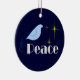 "Peace On Earth". Share some warm thoughts of Peace for the Holiday season with this keepsake Christmas ornament. A peaceful pale blue dove combines with bright shining stars and the simple message of "Peace" on the front of this ornamnent. Customize by changing the text on the back to reflect your own thoughts on the season, or to personalize with your family's name. Would make a nice keepsake gift for family or friends, too.