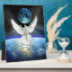 A white Dove of Peace spreads its wings over Planet Earth as the sun rises above Earth's horizon with the Moon in the background. A starry sky and the bright blue glow of the world as seen from space is a beautiful image of Peace for Christmas, Earth Day, or the New Year, or to use as a Christian symbol of the Holy Spirit of God.