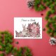 Gorgeous illustrated Peace on Earth Christmas postcard featuring pink poinsettia flowers and a bunny rabbit hiding among the flowers. This lovely holiday artwork makes for the perfect holiday card this year. Customize with your message and family names for an easy and beautiful card that's one of a kind with a message we all need to hope for this Christmas.