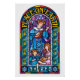 Peace on Earth Pre-Raphaelite style poster. Illustrated in water color and colored pencil, featuring a stained glass design after Burne Jones.