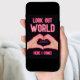This cool and funny graduation party invitation is perfect for any graduate. It features faux pink neon-lighted peace sign fingers and the phrase, "Peace out (school abbreviation)," on top of a blush pink background. On the back is pink neon-lighted words saying, "Watch out world. Here I come!" with hands making a heart sign on top of a simple black background. It's cute, modern, unique, and fun; the perfect design to send to your friends and family.