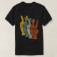 My 11 yo wore adult XL (5’7” 165#). The 8yo is small framed. She wore adult small and tied it in the back. Grandma wore adult large with long sleeve shirt underneath. Tall girl adult medium. Dark haired male adult large. Good quality dark Heather gray, Gildan brand shirt. -it was next up from basic choice and cost about $20 per shirt. Not too thick or thin. Washed and dried well, no major shrinkage. Not see-through. Can wear a bra under it fine. Screen print is just as shown and well done, front and back.