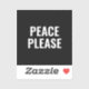 Peace please black and white text simple minimalist anti war protest Custom-Cut Vinyl Sticker.