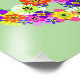 A floral peace sign in shades of pink, yellow, orange, purple, green, white and black.