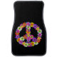 A floral peace sign in shades of pink, yellow, orange, purple, green, white and black.