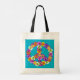 Peace Sign Floral Cutout on Turquoise Tote Bag