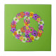 Peace Sign Floral on Lime Green Ceramic Tile