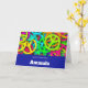 Birthday card with a sixties vibe. Cool peace signs in bright and vibrant neon colors featuring all the colors of the rainbow.