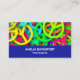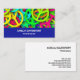 Business cards with a sixties vibe. Cool peace signs in bright and vibrant neon colors featuring all the colors of the rainbow.