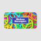 A name tag with a sixties vibe. Cool peace signs in bright and vibrant colors featuring all the colors of the rainbow.