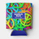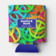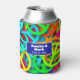 Can cooler with a sixties vibe. Cool peace signs in bright and vibrant colors featuring all the colors of the rainbow.
