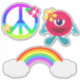 Colorful rainbow fun, peace sign, cute monster and rainbow with clouds! Kiss cut for easy removable, excellent printing!