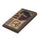 Image printed on trifold wallet is from a photo of an original tapestry crochet creation designed handmade and Copyright © by published designer Delores Chamblin. The picture of the front section of the unique brown earth tone handcrafted bag with peace sign and solidarity fist is reproduced on the billfold.