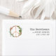 Illustration of a wooden peace sign decorated with Christmas botanicals including evergreen branches, mistletoe, and holly berries.
