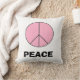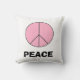 PEACE SIGN WITH THE WORD "PEACE" IN PINK AND BLACK. PILLOW