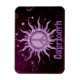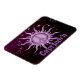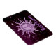The sun and the symbol for peace celebrate your birth month in lavender, lilac, and purple with stars.